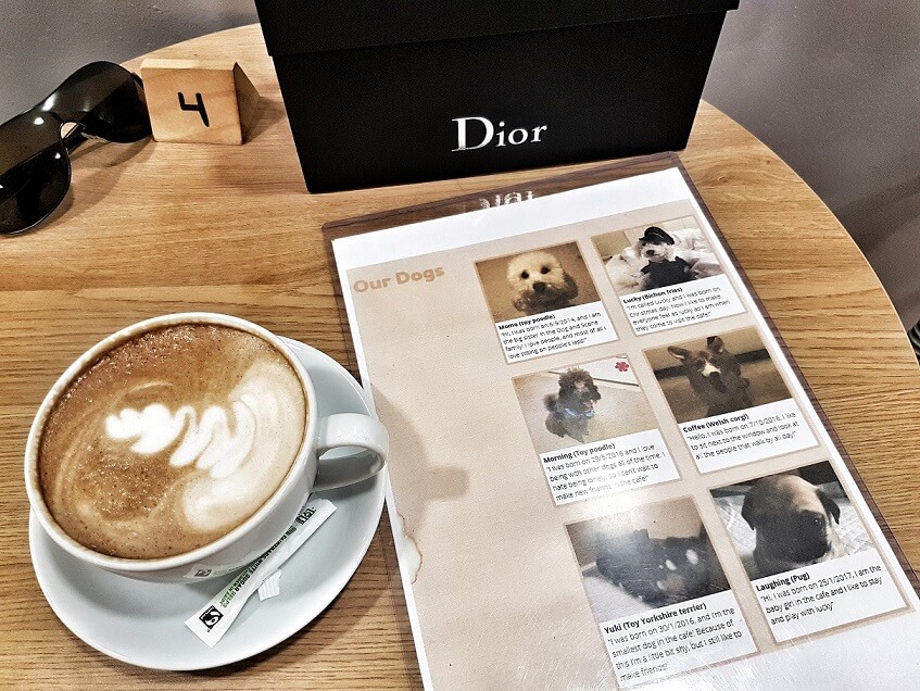 If you are wondering what a dog cafe is….well…let me tell you. It’s a cafe which serves coffee and tea and sandwiches, with dogs running around and you get to play with them!