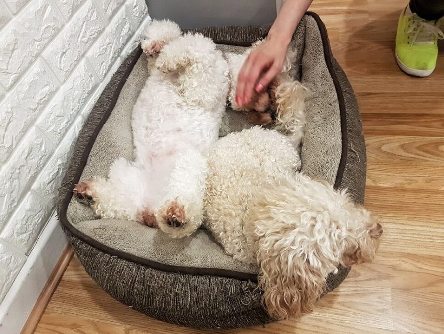A pug who sleeps and snores with her eyes open! When I arrived at 3 pm, this pug called Laughing has been asleep and still sleeping till I left. She was happy for us to carry her and passed around but I couldn’t resist taking a picture of her snoring with her eyes open! She does look demonic like this though…..